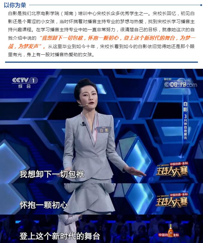 这次想向大家介绍的是来自新闻类的6号选手白影。毕业于中国传媒大学播音主持专业。