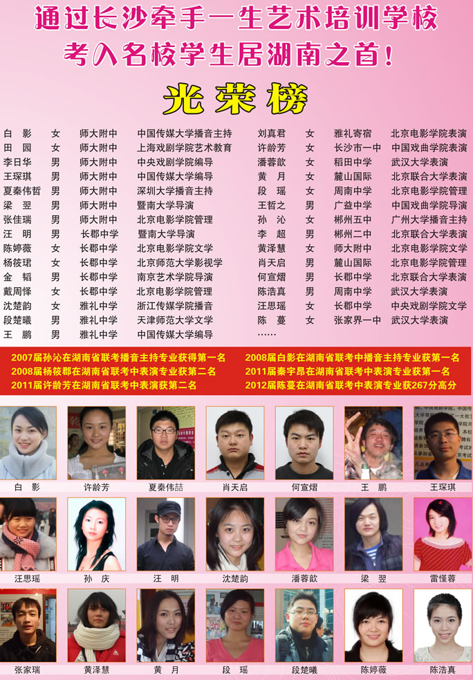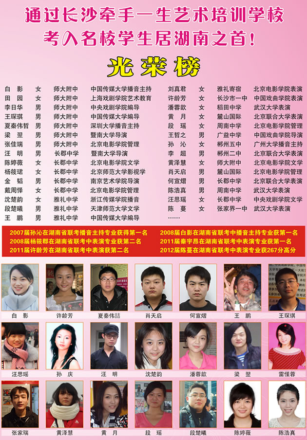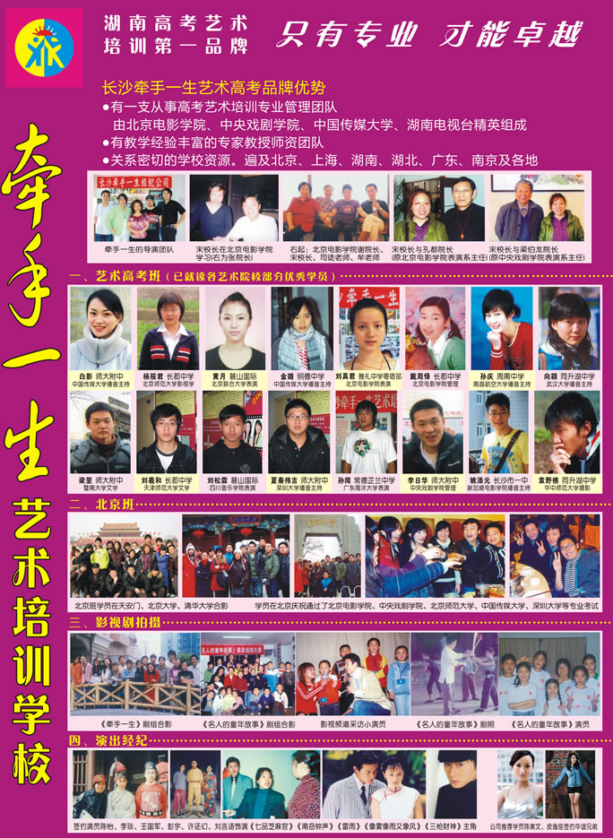 2010年3月20日,北京电影学院网上公布了艺术专业过关名单,牵手一生三位学生荣登喜榜,其他学生考取有中央戏剧学院、中国传媒大学、中国戏剧学院、北京师范大学、重庆大学、南京艺术学院等多家国内知名学院。