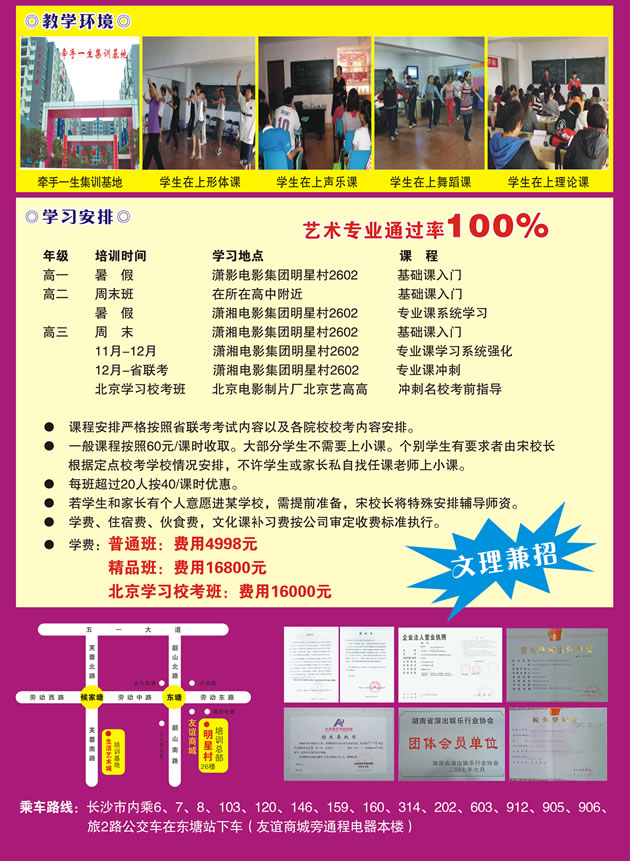 开设专业:表演、播音主持、编导(文学、管理)